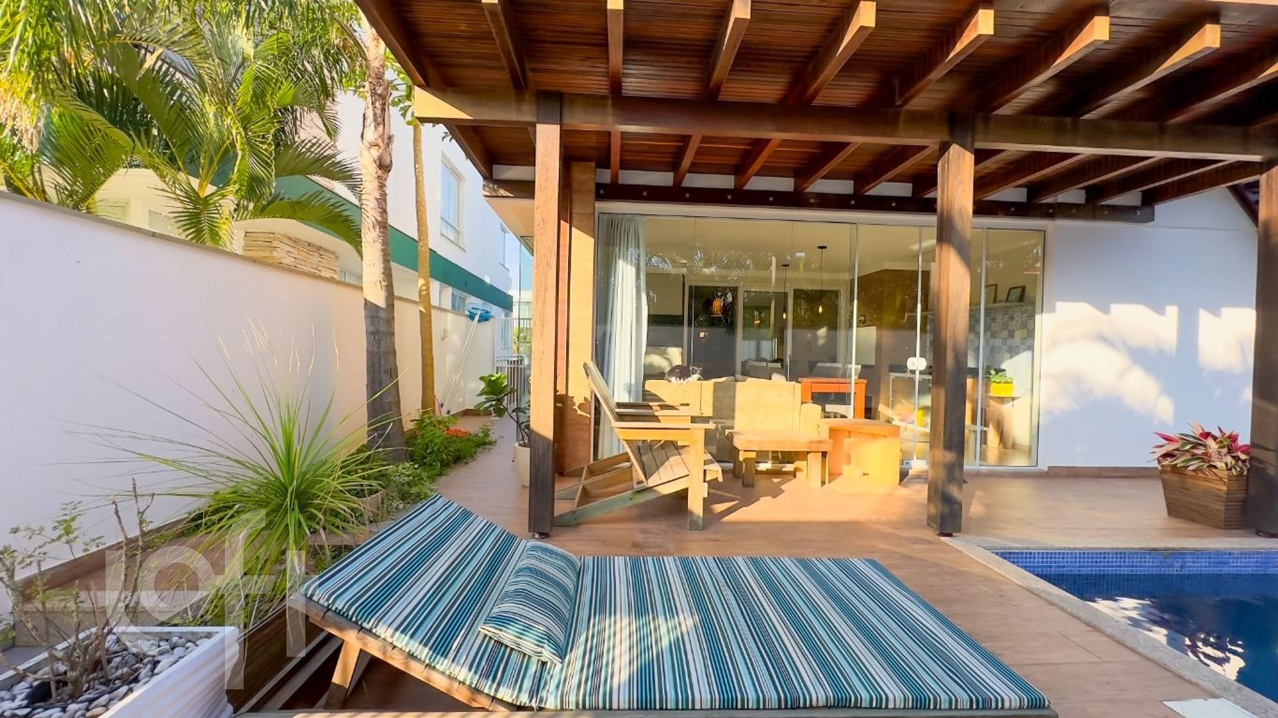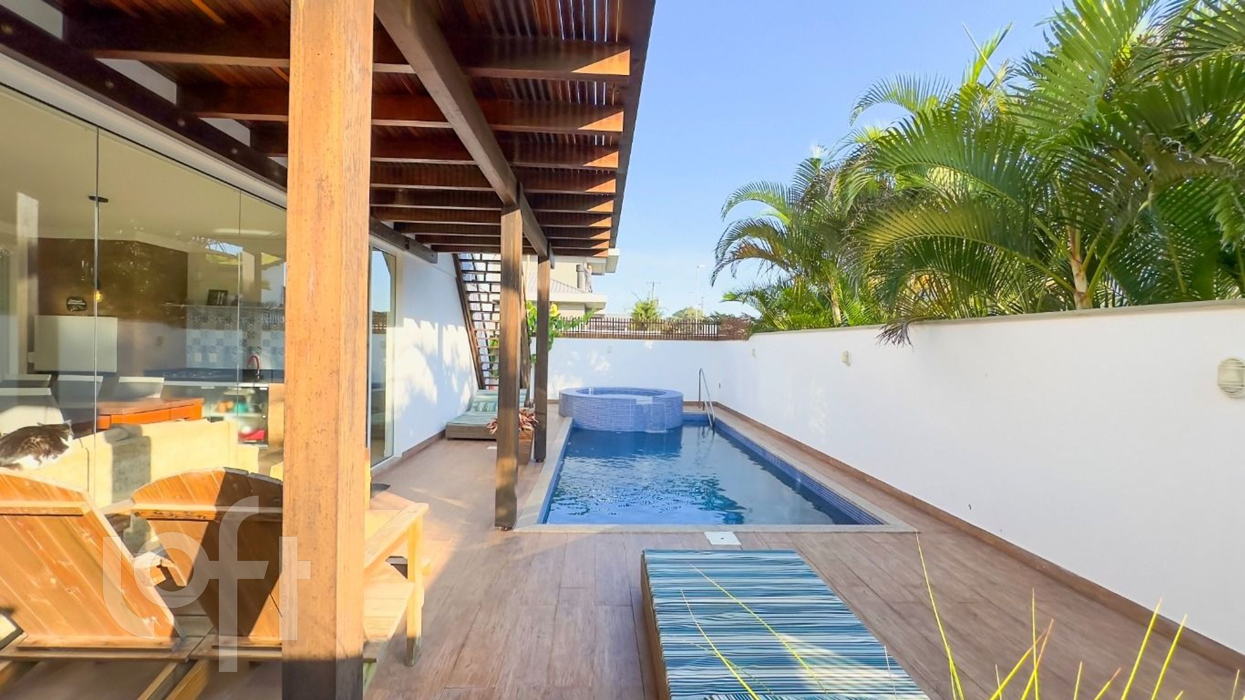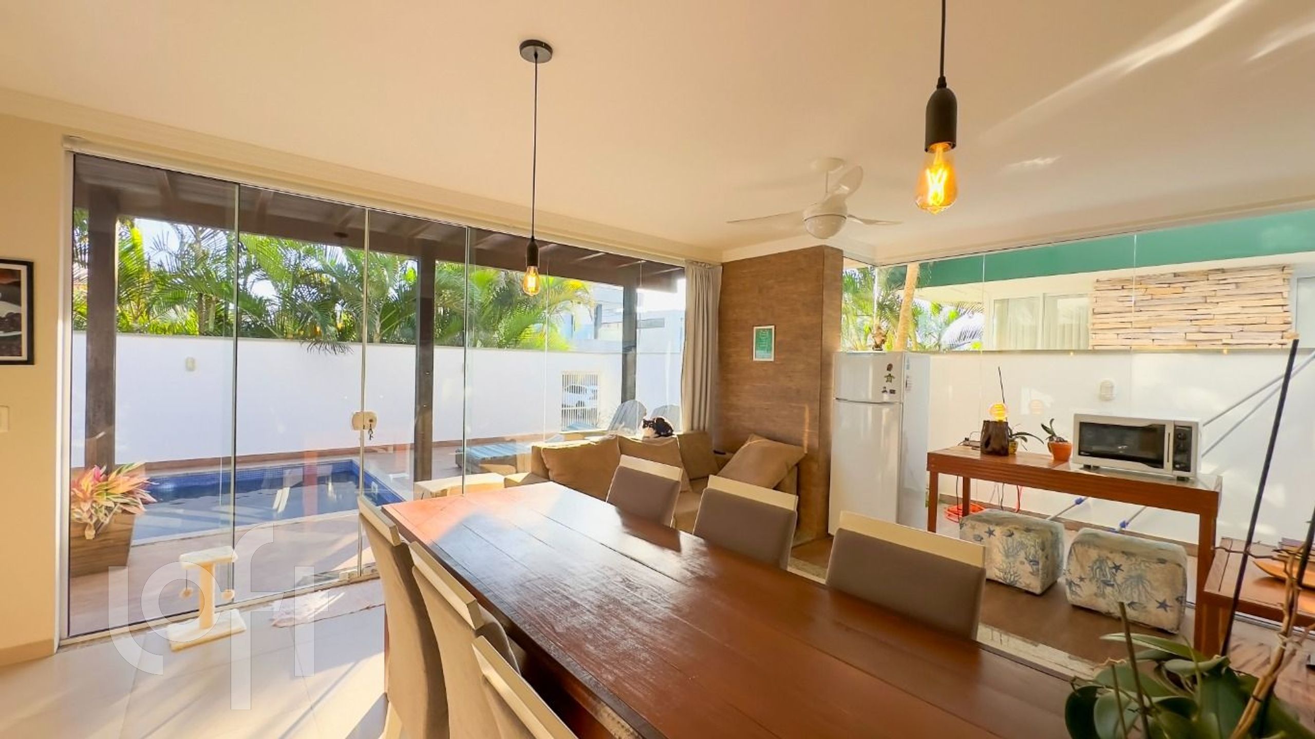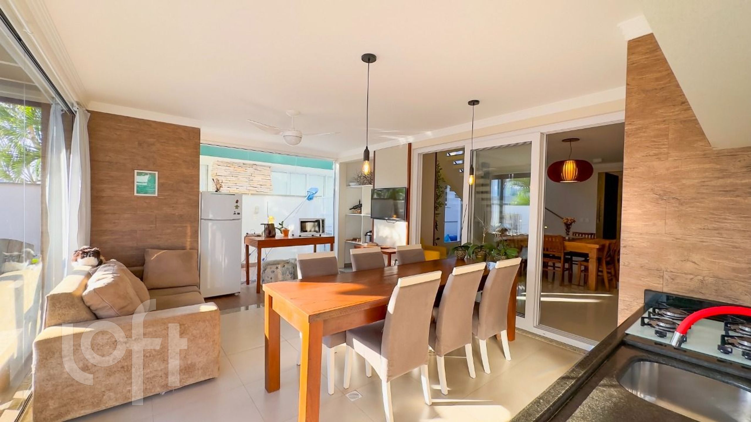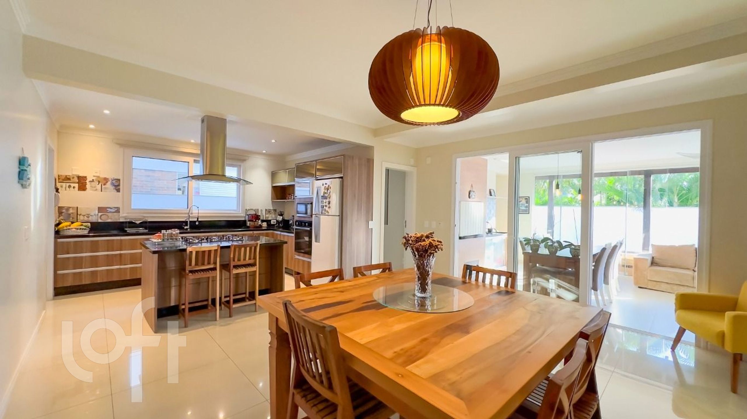 A espaçosa sala de estar com lareira e a cozinha integrada, criam o ambiente ideal para receber amigos e familiares. E para os momentos de lazer, a piscina com deck e churrasqueira é o convite perfeito para desfrutar do clima tropical.