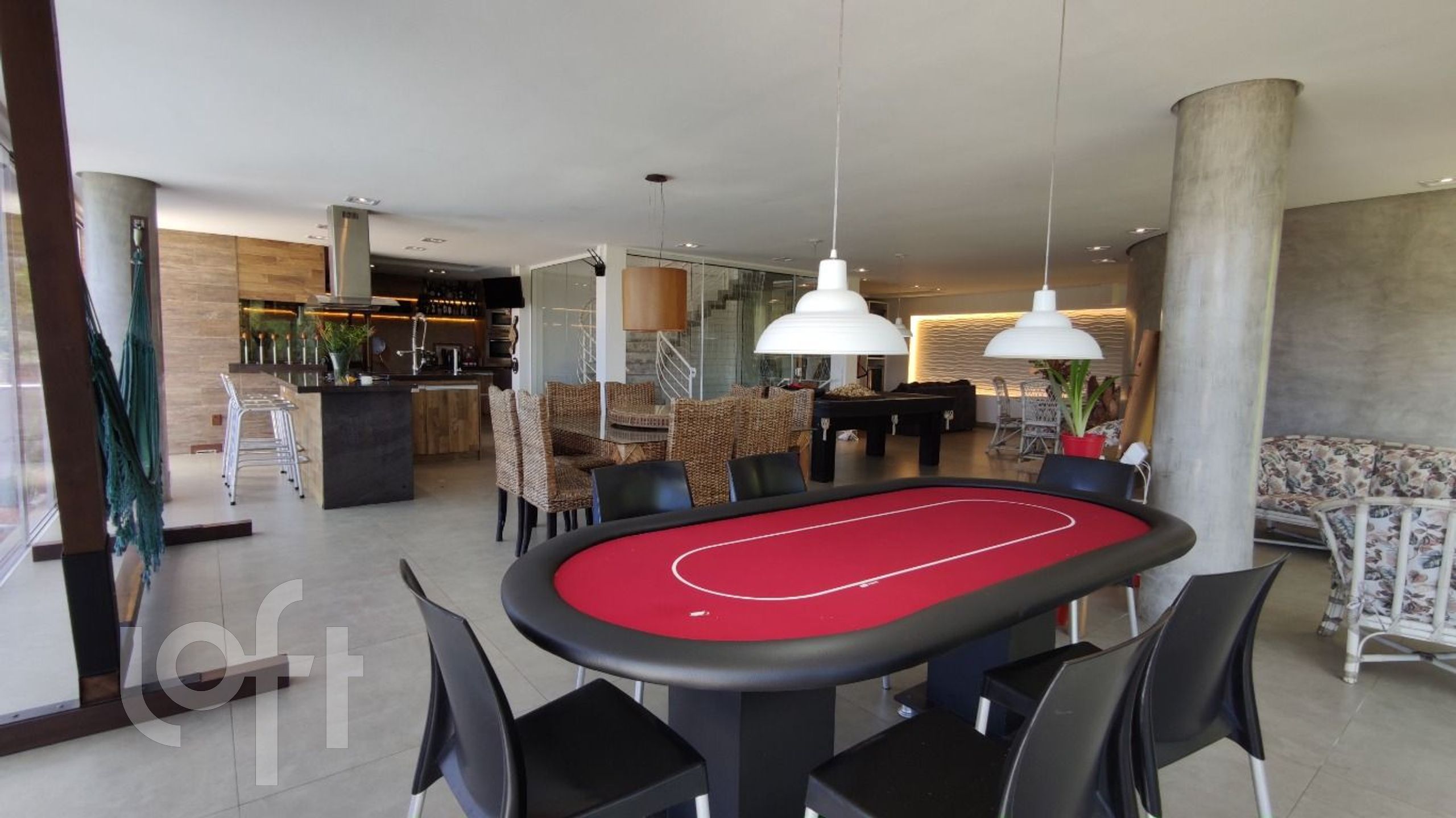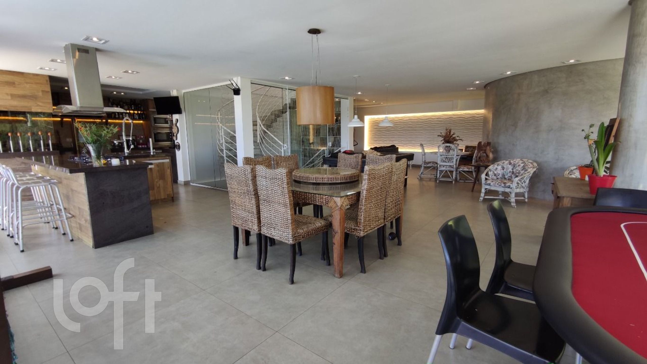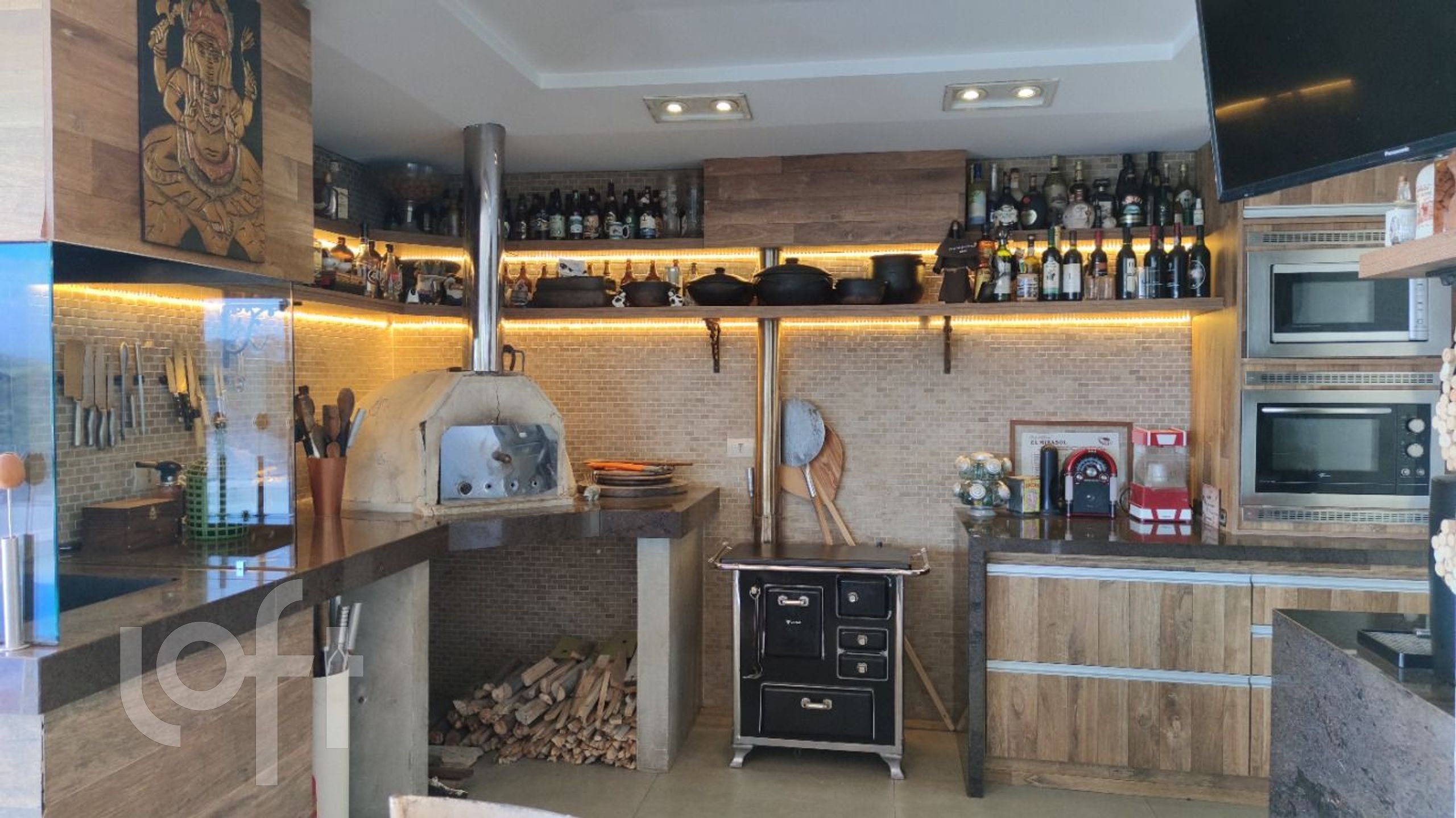 No segundo nível uma cozinha completa e living integrado ao espaço gourmet totalmente equipado, churrasqueira a carvão e forno e fogão à lenha.