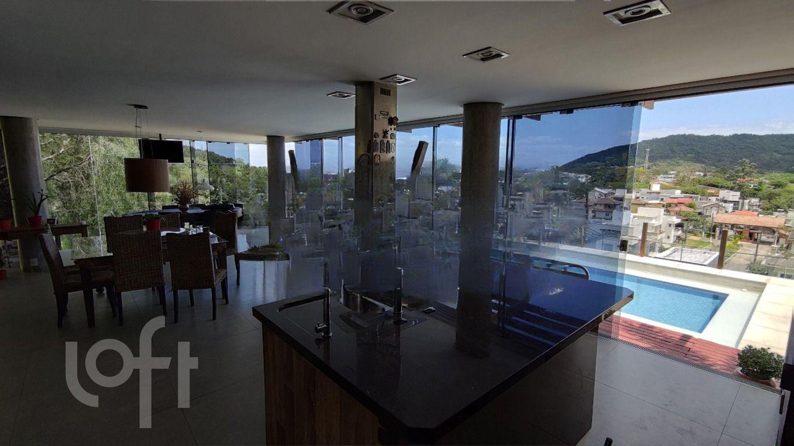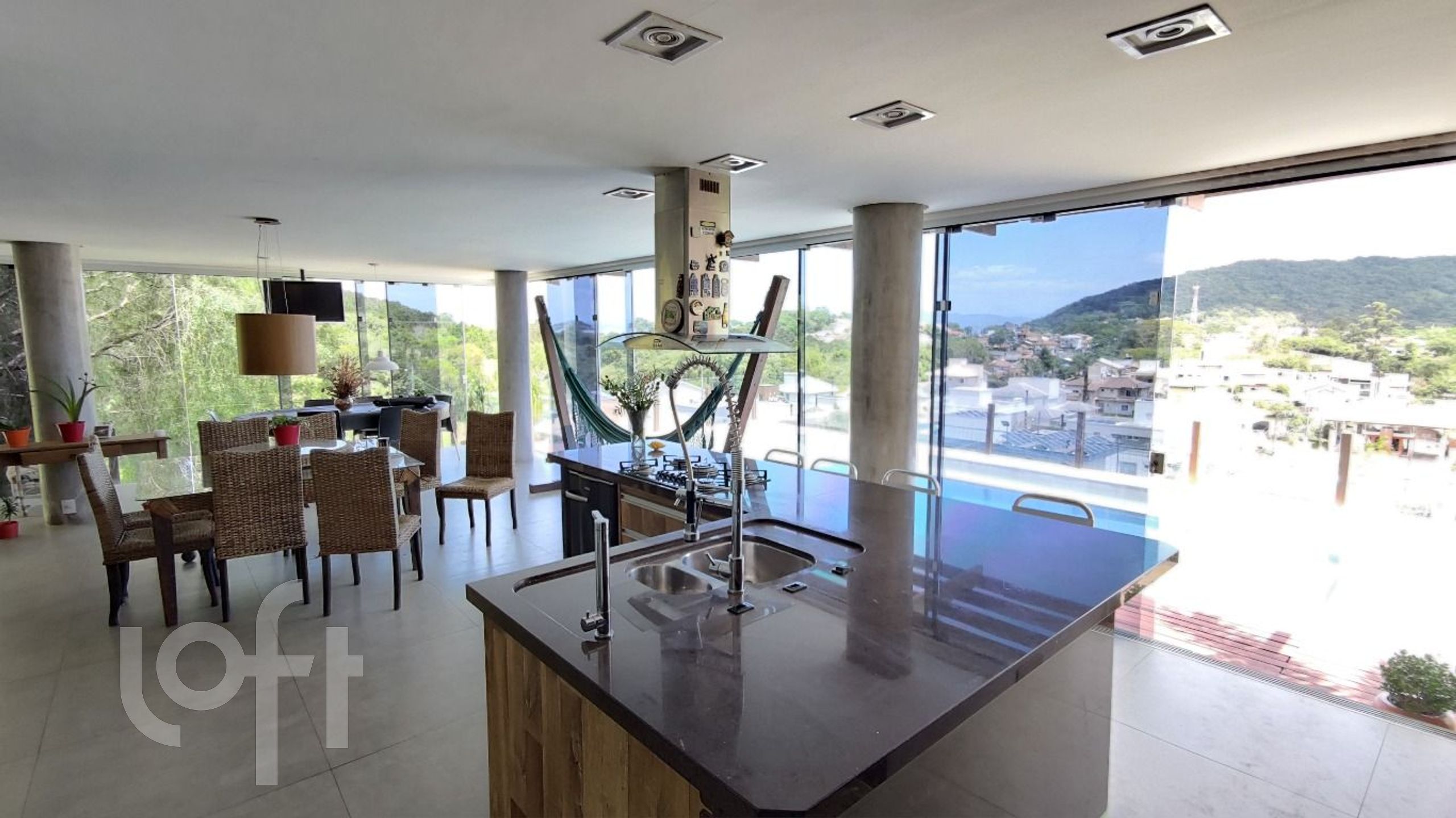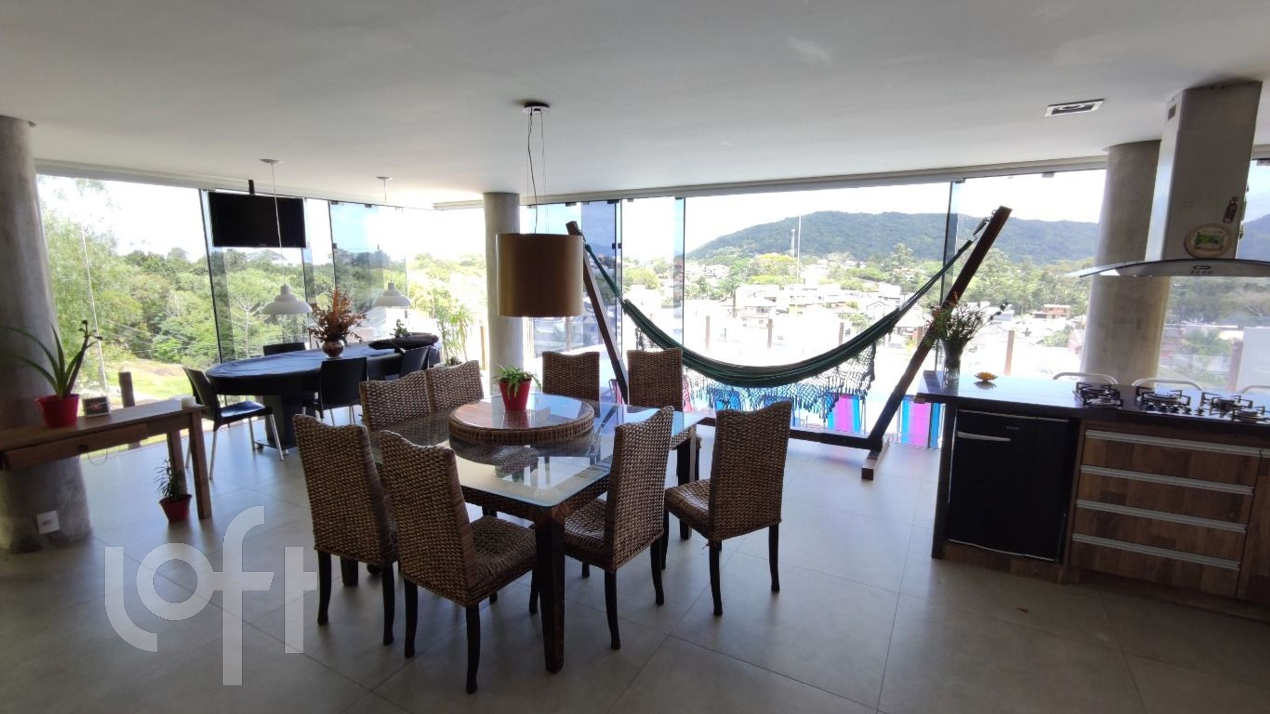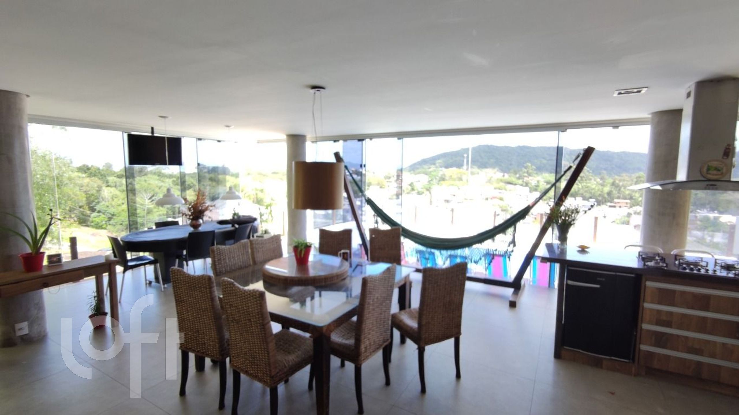 No segundo nível uma cozinha completa e living integrado ao espaço gourmet totalmente equipado, churrasqueira a carvão e forno e fogão à lenha.