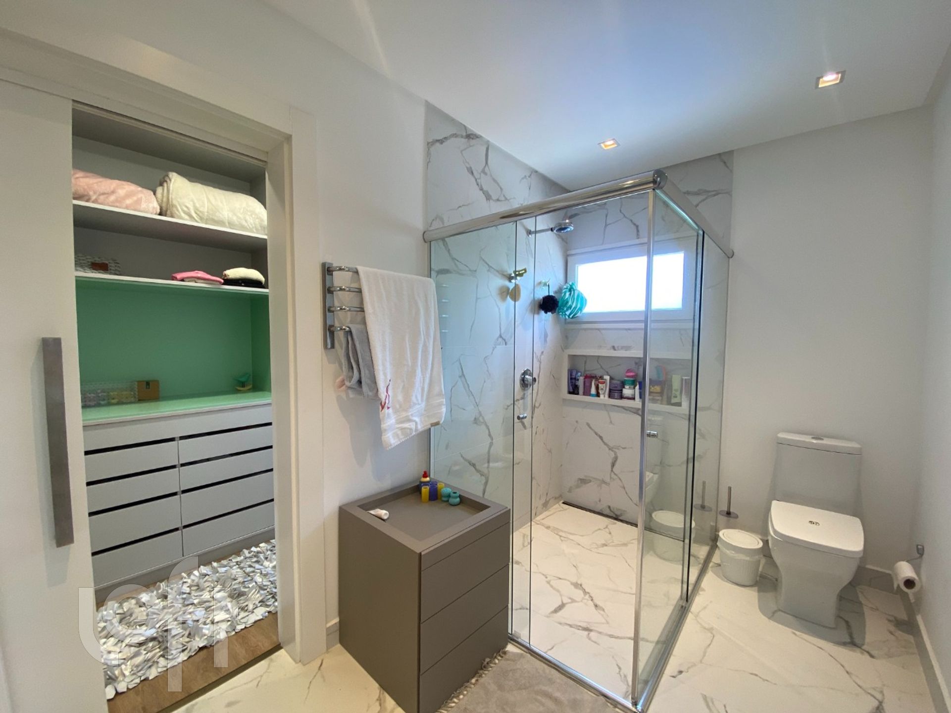 Na área externa, amplo gramado livre com uma belíssima piscina de borda infinita, aquecida e com iluminação, ducha e fogo de chão.