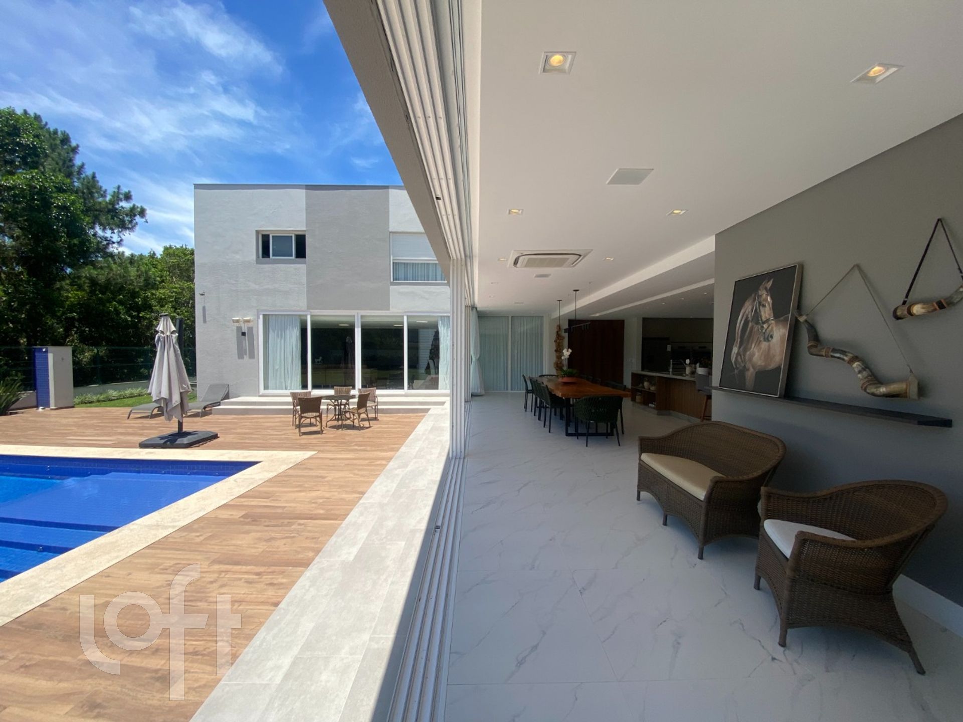 A casa é toda climatizada e automatizada com sistema Alexa: sistema de luz, som, abre/fecha de persianas, tudo automatizado. Pisos em porcelanato. Possui usina fotovoltaica de produção de energia elétrica e garagem para 4 carros.