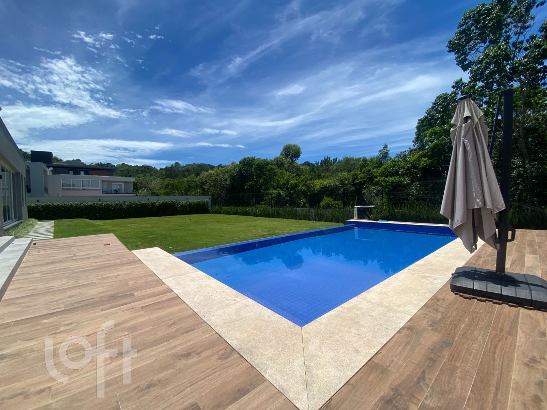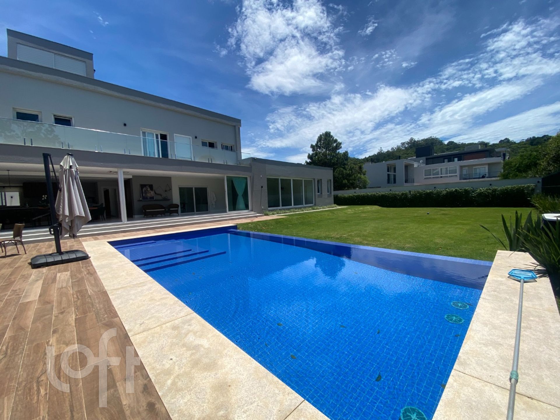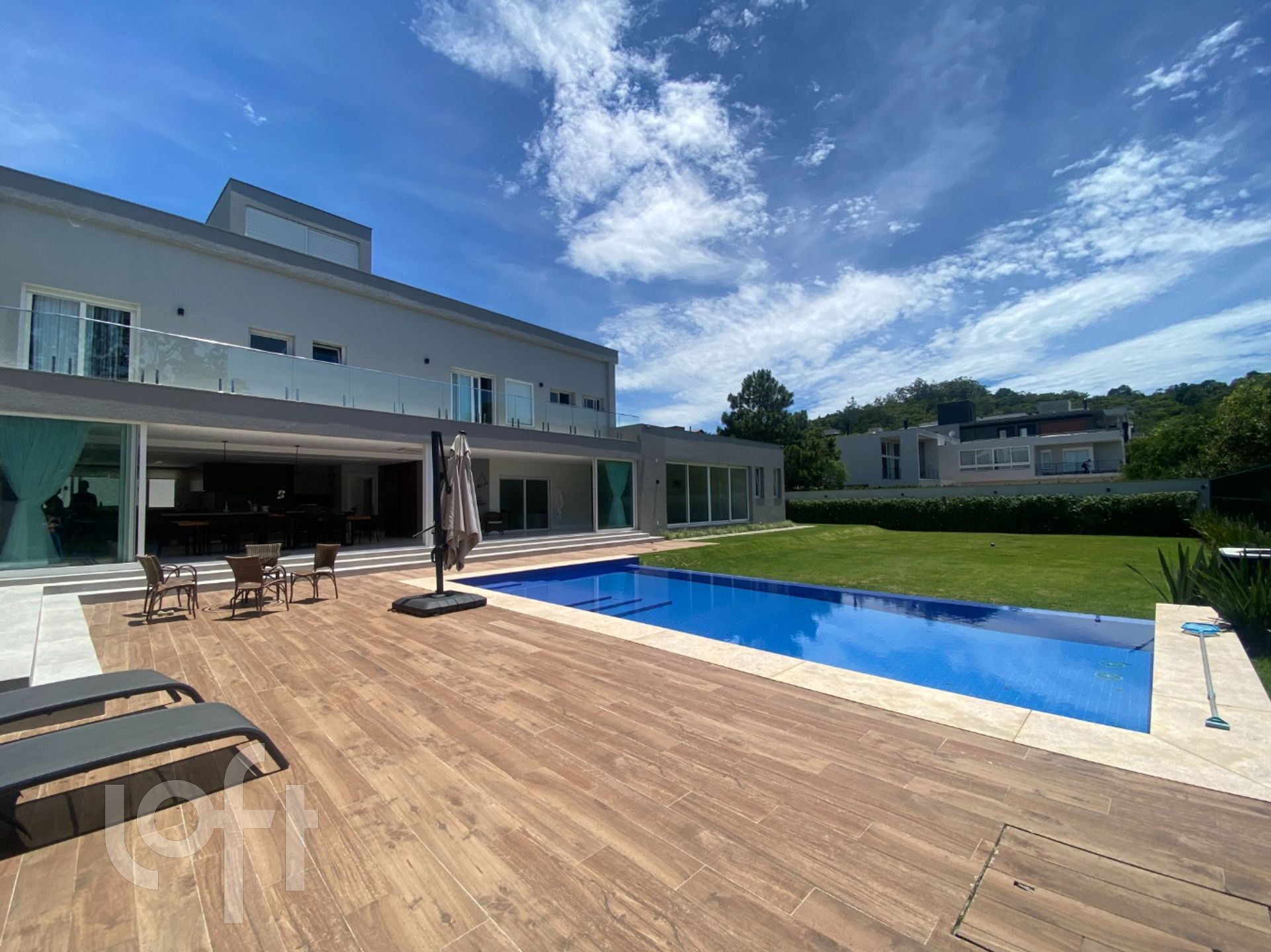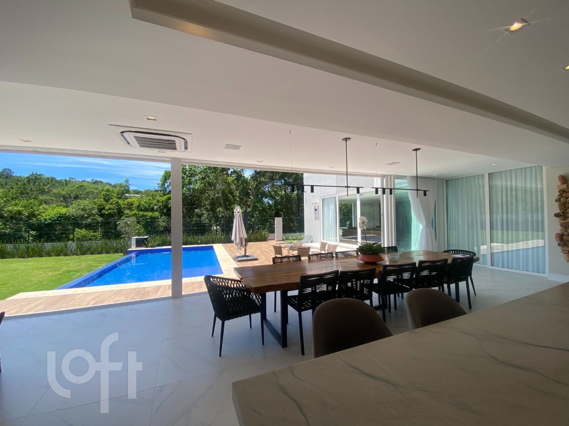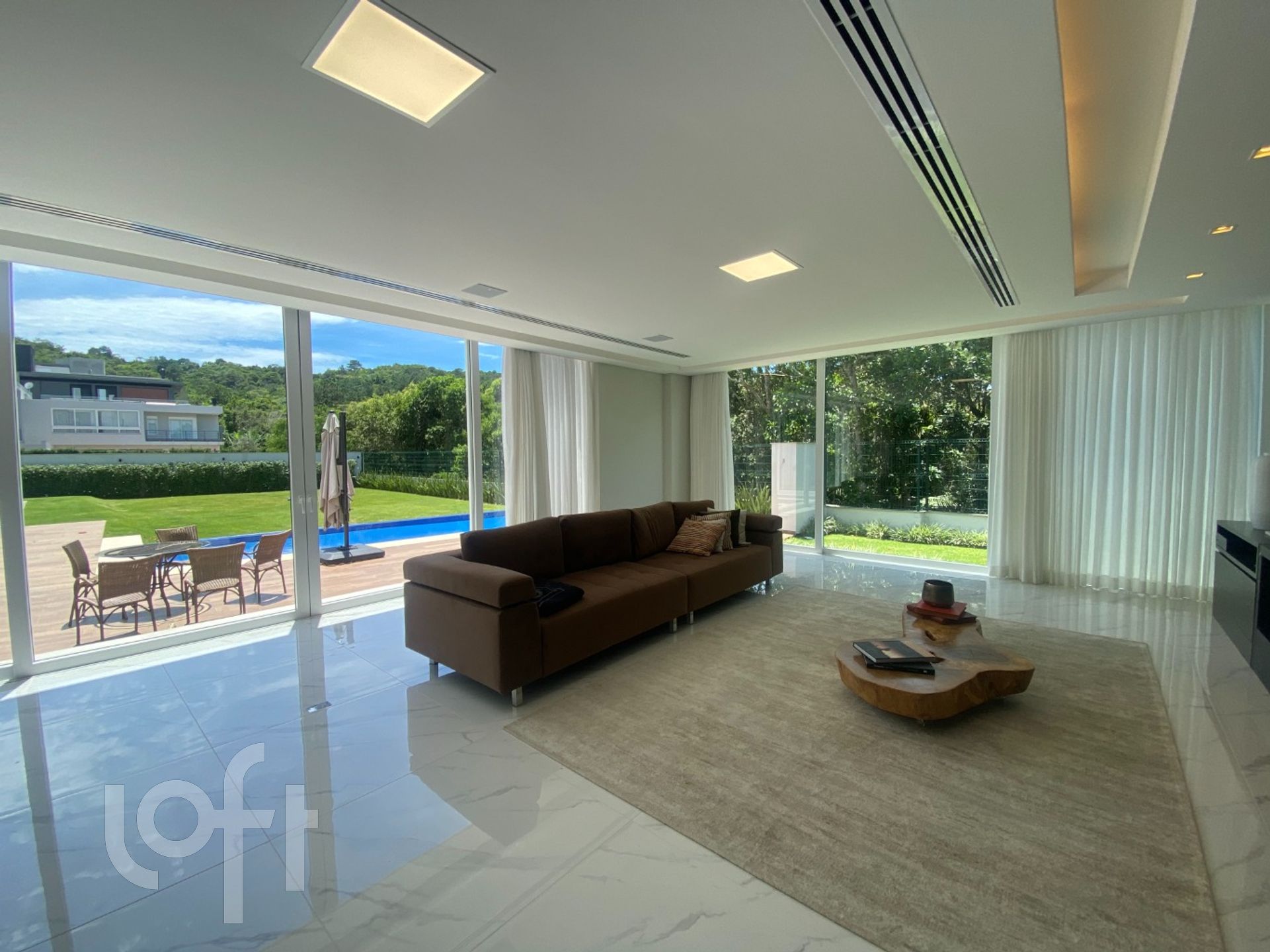 A casa é toda climatizada e automatizada com sistema Alexa: sistema de luz, som, abre/fecha de persianas, tudo automatizado. Pisos em porcelanato. Possui usina fotovoltaica de produção de energia elétrica e garagem para 4 carros.