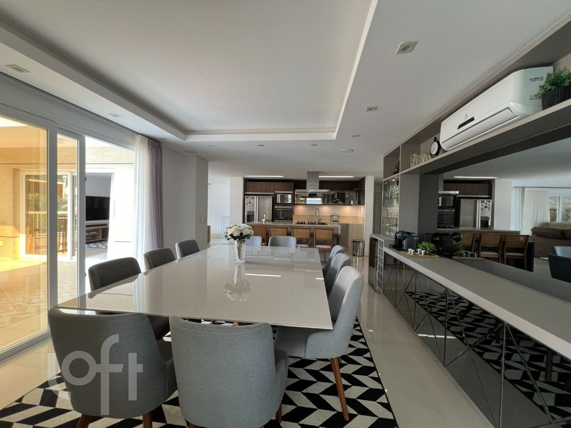 A área externa conta com piscina privativa em um ambiente reservado e agradável, perfeito para aproveitar os dias de sol. A garagem tem capacidade para até 5 veículos, garantindo comodidade para a família e visitantes.