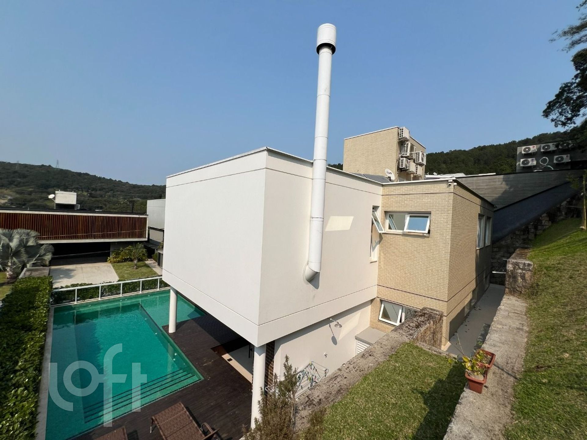 A área externa conta com piscina privativa em um ambiente reservado e agradável, perfeito para aproveitar os dias de sol. A garagem tem capacidade para até 5 veículos, garantindo comodidade para a família e visitantes.