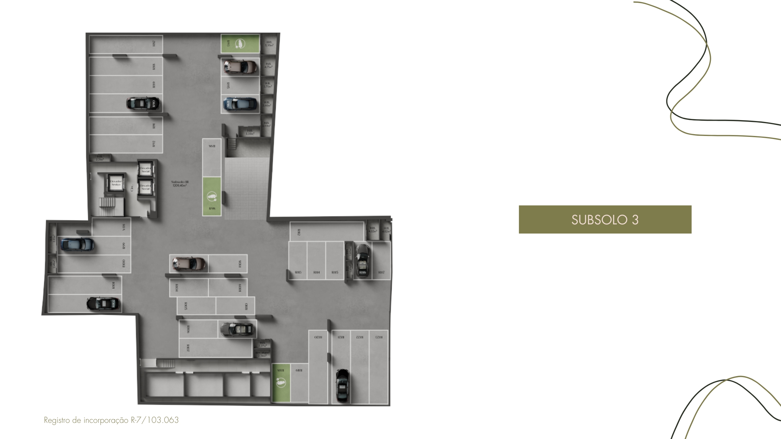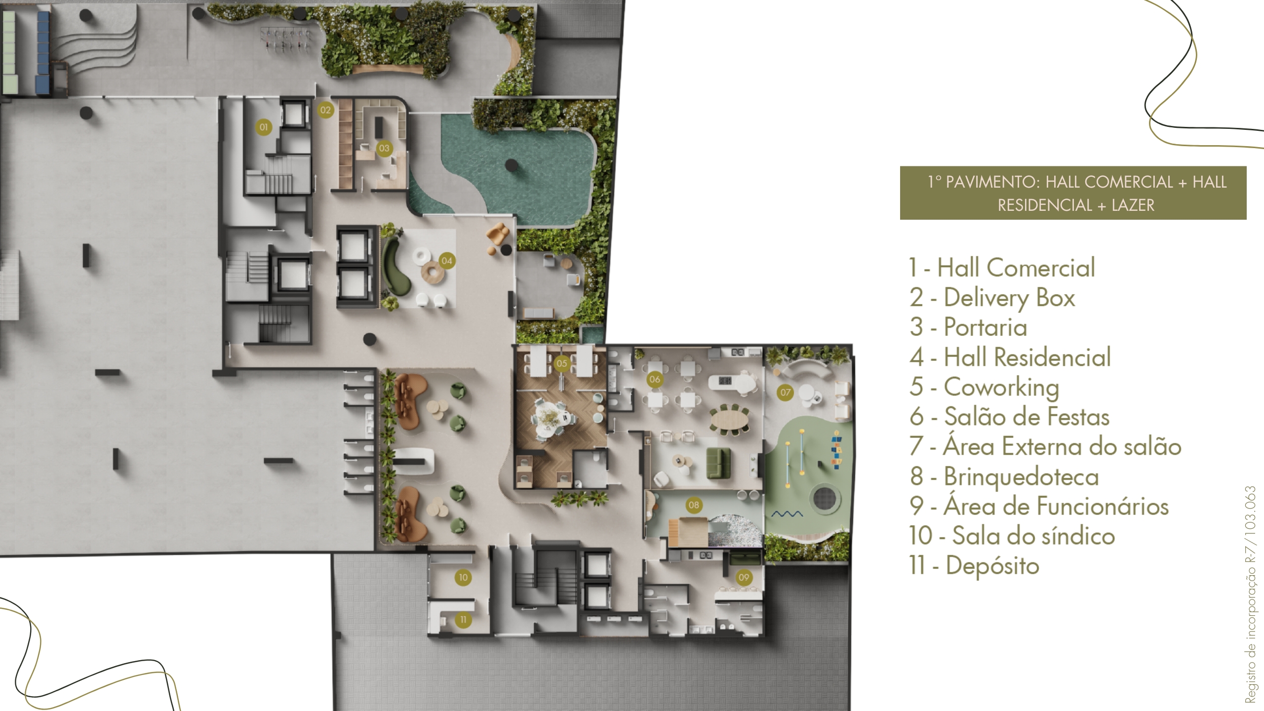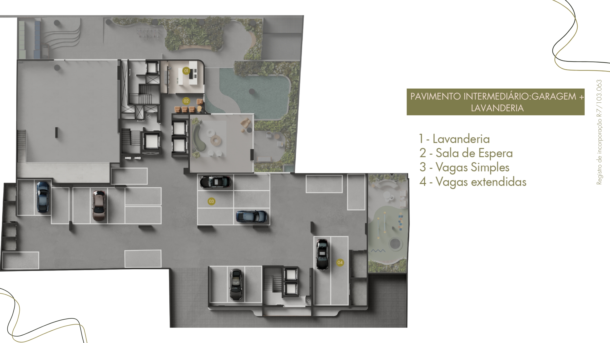 • Pavimentos: subsolos, térreo com áreas de lazer e comerciais, pavimentos tipo e rooftop