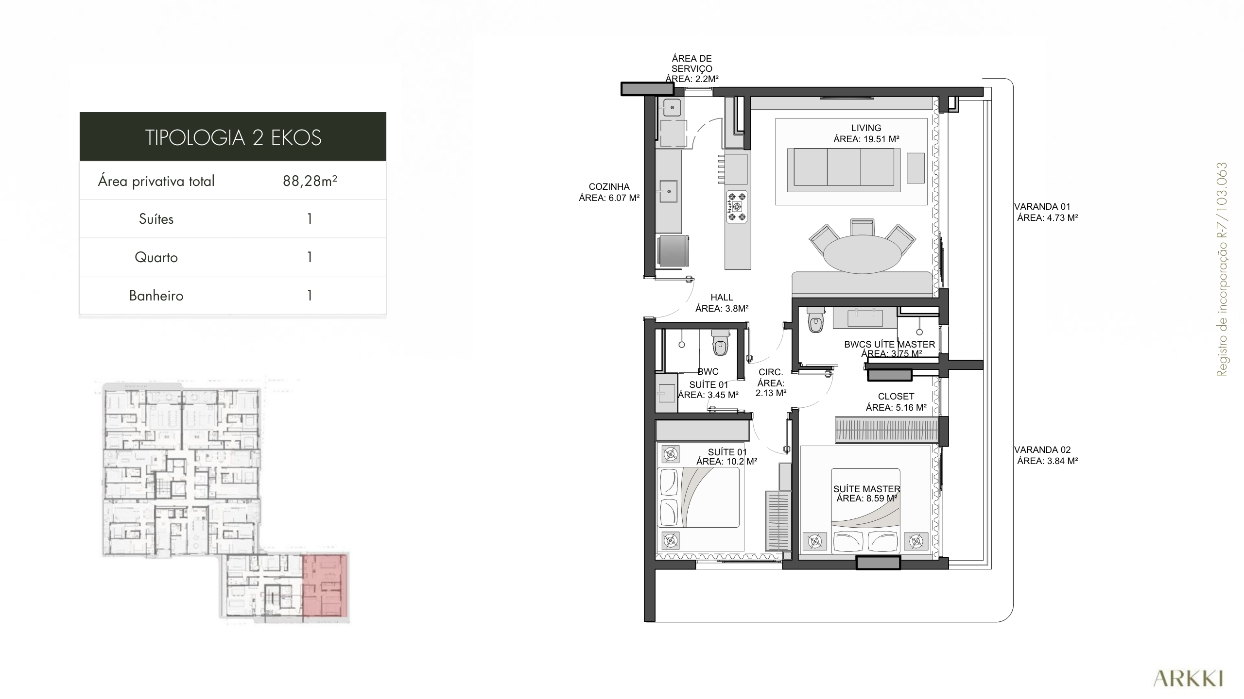 O Arkki é formado por duas torres, Kaá e Ekos, que traduzem sofisticação e equilíbrio entre funcionalidade e estética.